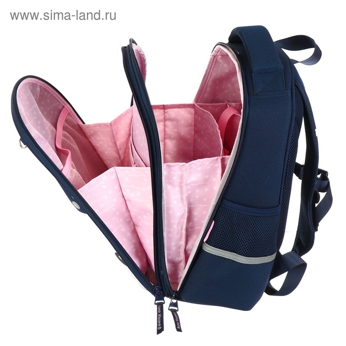 Рюкзак каркасный школьный 38 х 30 х 16 см, эргономичная спинка, Stavia "Фламинго мини", чёрный/розовый