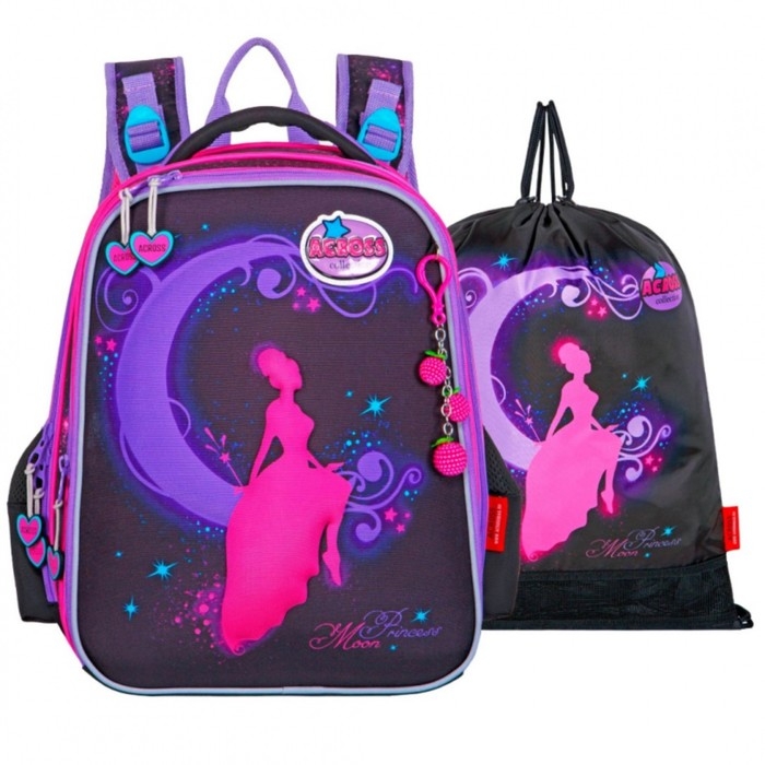 Это школьный ортопедический рюкзак бренда ACROSS, который идеально подойдет первокласснику. Анатомическая плотная спинка рюкзака с ортопедическими вставками равномерно распределяет нагрузку на позвоночник и сохраняет осанку. Эргономичные удобные лямки с регулировкой по росту и нагрудным фиксатором обеспечивают правильную посадку рюкзака. Мягкая ручка в верхней части рюкзака сделает ношение в руке более удобным и комфортным. Удобная петля для подвешивания к школьной парте.