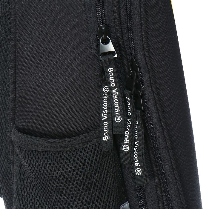Рюкзак BrunoVisconti® облегченная капсула черный с эргономичной спинкой «PLAY THE GAME NOW». Рюкзак школьный «PLAY THE GAME NOW» ТМ Bruno Visconti облегченный, с эргономичной спинкой. Для его производства использовалась ткань premium качества: водонепроницаемая, морозостойкая, с повышенной износостойкостью, грязеотталкивающая плотностью 900 DEN. Благодаря сложнейшим современным технологиям нанесения на ткань рюкзак украшает авторский дизайн, соответствующий последним трендам. Плотная фирменная подкладка BRUNO VISCONTI идеально сочетается с дизайном и цветом самого рюкзака. Двунаправленные реверсивные надежные 8-мм молнии с 5-см пуллером на замках позволяют легко открывать и закрывать рюкзак.
