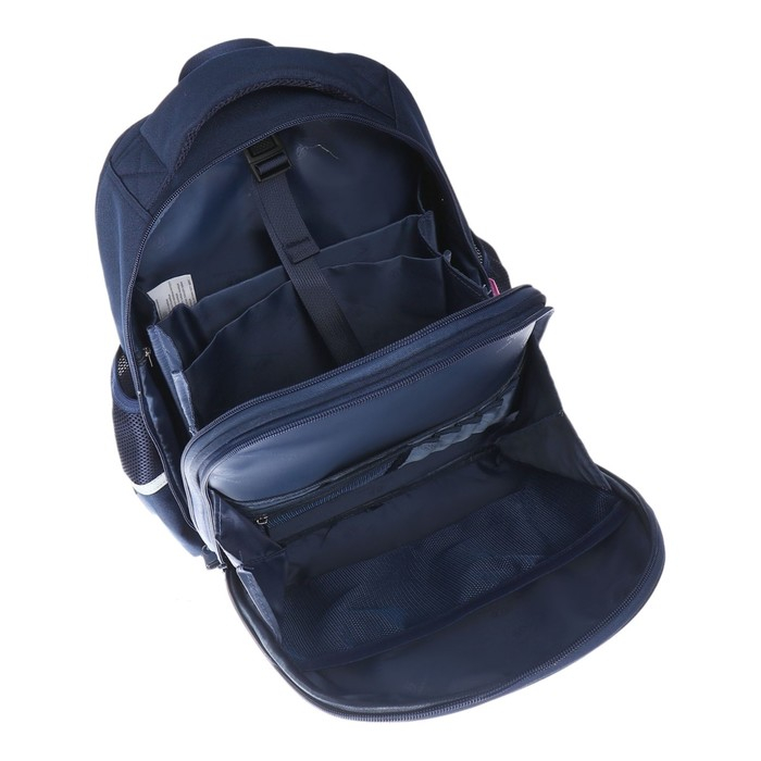 Рюкзак имеет два основных отделения: первое отделение содержит органайзер с молнией и карман-сеточку, второе отделение состоит из трех частей с двумя разделителями с фиксирующим ремнем и дополнено карманом на молнии для карточки. Рюкзак снабжён четырьмя светоотражающими элементами. Усиленное дно рюкзака оснащено резиновыми ножками, защищающими от загрязнения и влаги.
