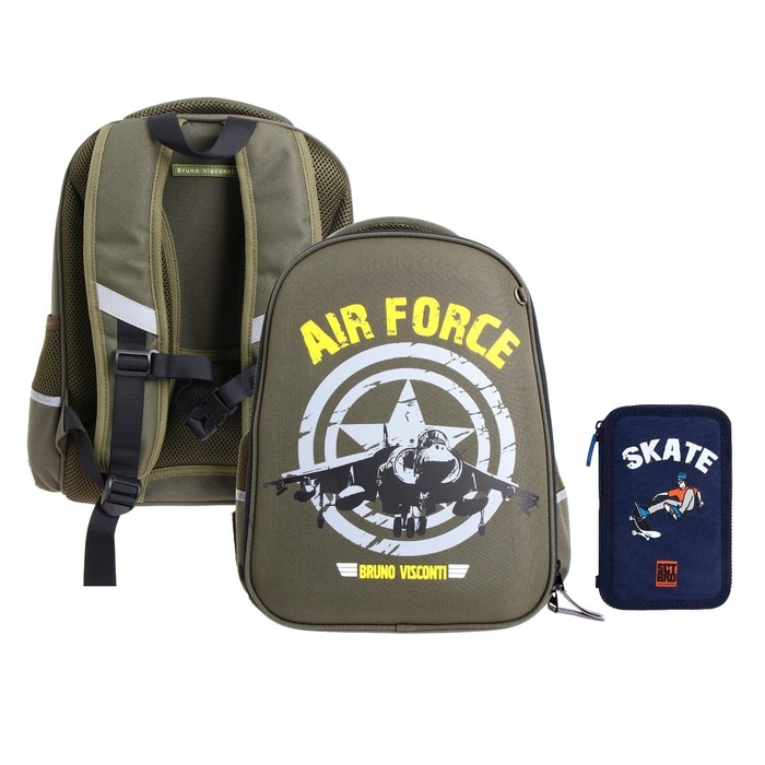 Рюкзак каркасный 38 х 30 х 20 см, + пенал, Bruno Visconti "МИЛИТАРИ AIR FORCE"