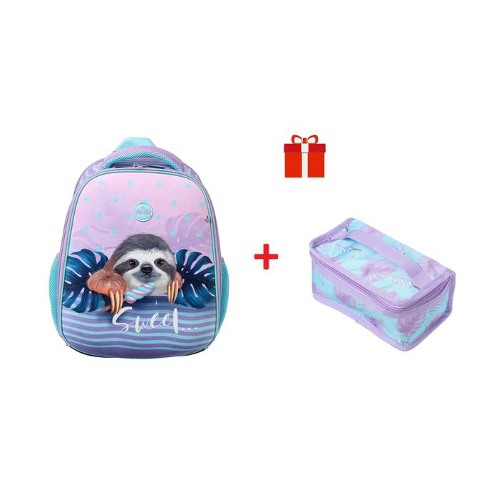 Рюкзак каркасный, Hatber, Ergonomic Plus, 38 х 29 х 16, с термосумкой, «Милый ленивец»