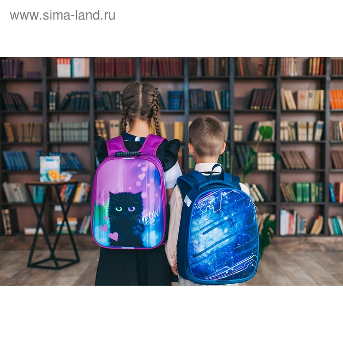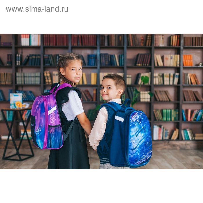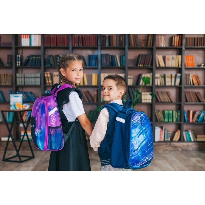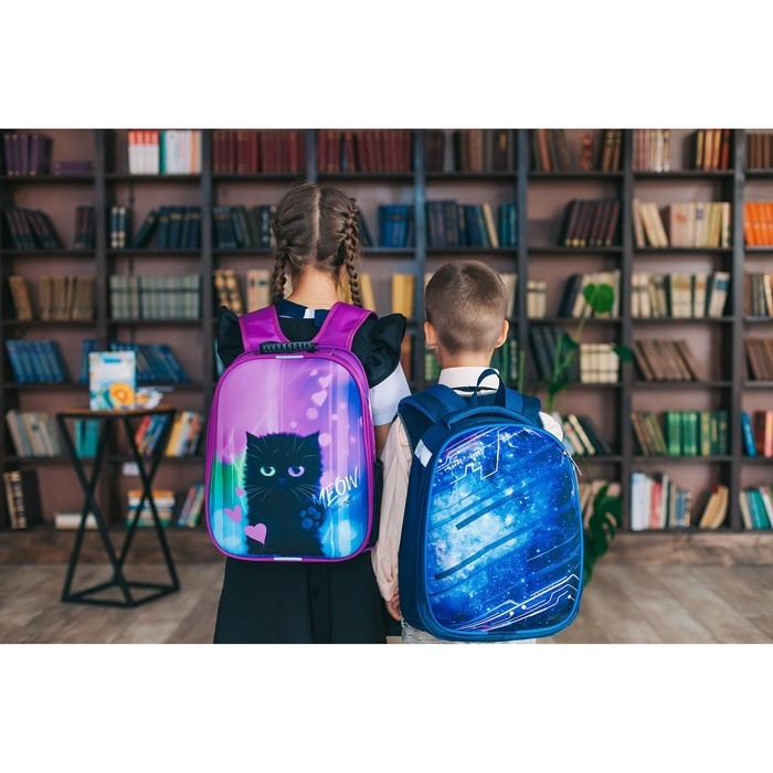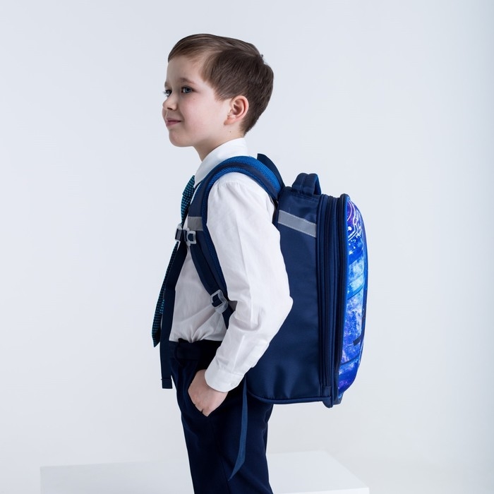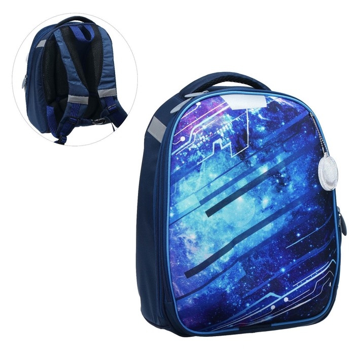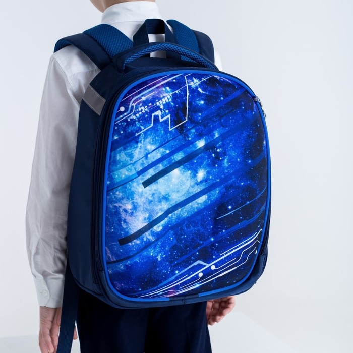 Рюкзак каркасный школьный, 37 х 28 х 19 см, Calligrata К "Крутой космос", синий