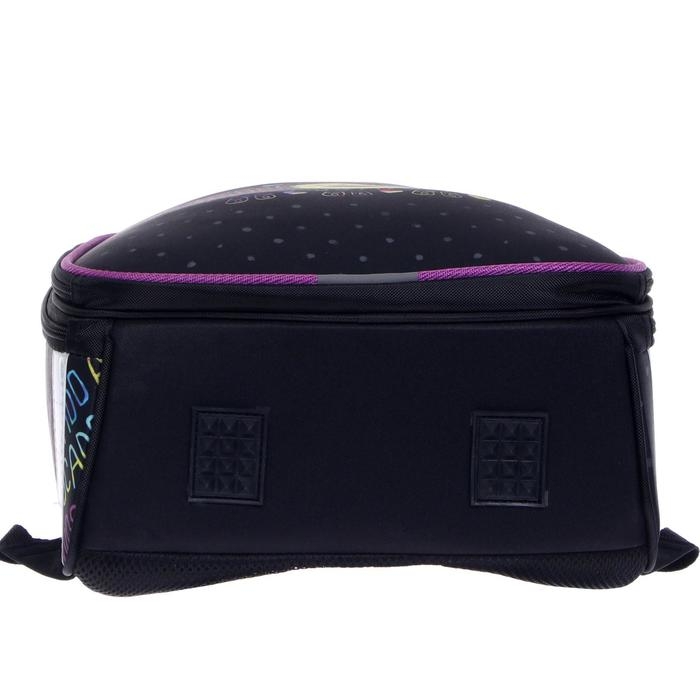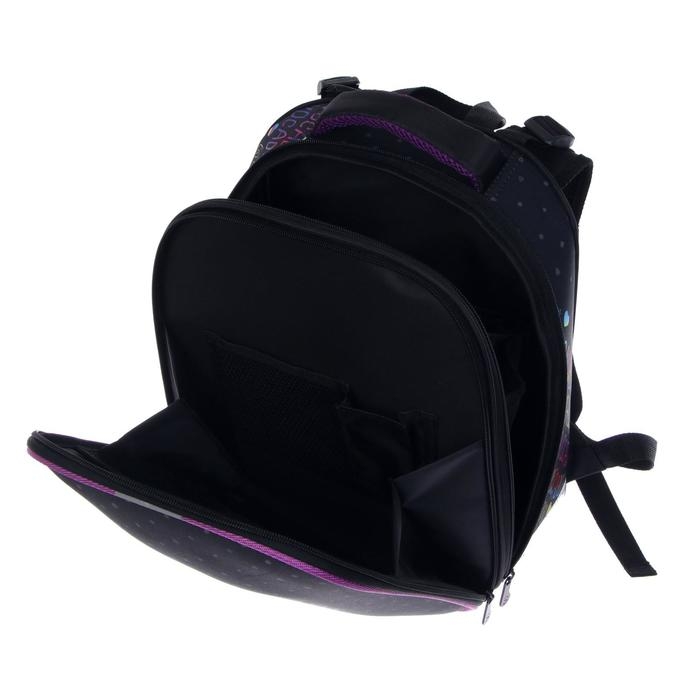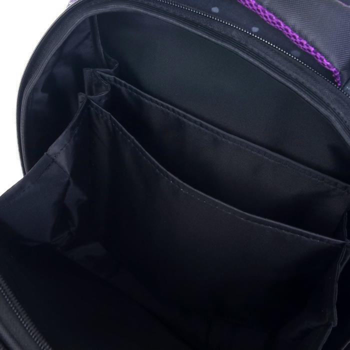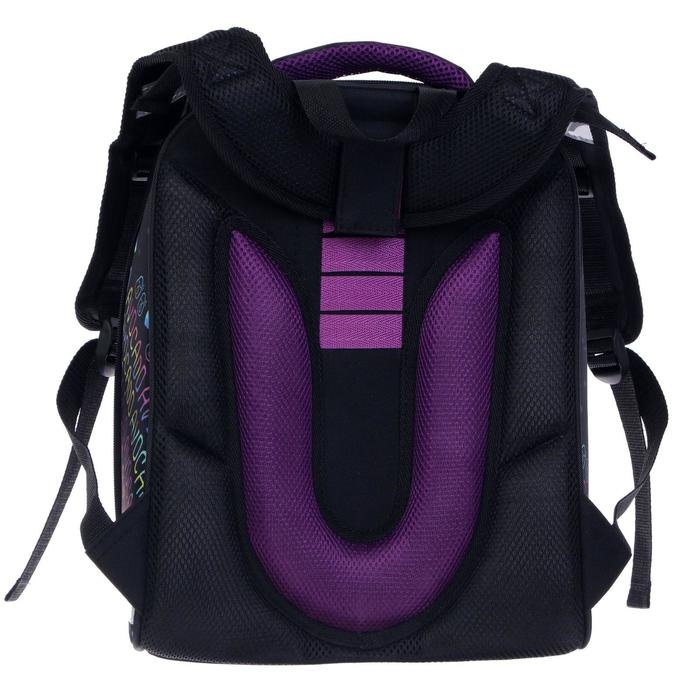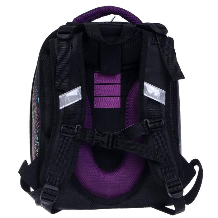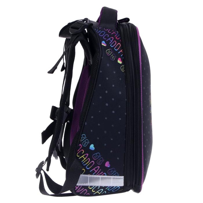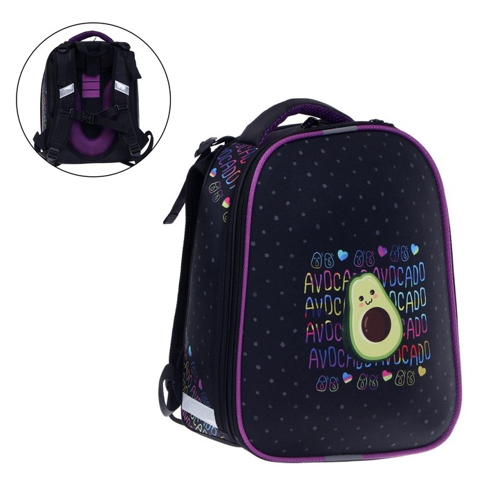 Рюкзак каркасный школьный 38 х 30 х 16 см, эргономичная спинка, Stavia "Авокадо", чёрный/сиреневый