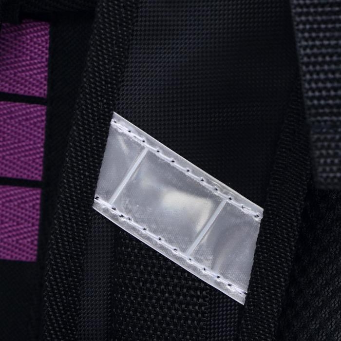 Ранец изготовлен из формованного EVA-материала и высокопрочного непромокаемого полиэстера. Размер 30 х 38 х 16 см. Вес 900 г. Прочные формованные стенки и дно ранца позволяют надежно защитить содержимое от влаги, загрязнений и предотвращают его замятие. Ранец с двумя вместительными отделениями, закрывающимися на реверсивную пластиковую молнию с металлическими «бегунками»; в первом — «плавающие» перегородки для тетрадей и учебников, во втором – большой карман из сетки и карманы-органайзеры для канцелярских принадлежностей. Плотная спинка с анатомическими элементами дополнительно укреплена пластиком, сверху – дышащая трехслойная сетка. Лямки-маечка плотные, мягкие. Регулируются по длине и высоте, что позволяет без труда отрегулировать их по росту ребенка. Ранец снабжен надежным нагрудным фиксатором. Есть удобная мягкая ручка для переноски и дополнительная петлевая ручка для размещения ранца на крюке. На дне ранца есть две пластиковые ножки. В соответствии с требованиями к безопасности на дороге, ранец имеет светоотражающие элементы на лямках и корпусе.