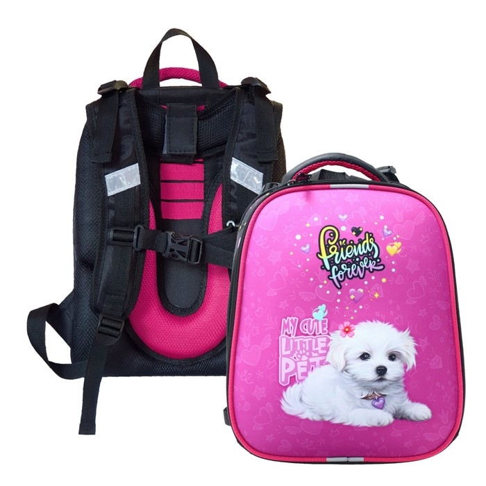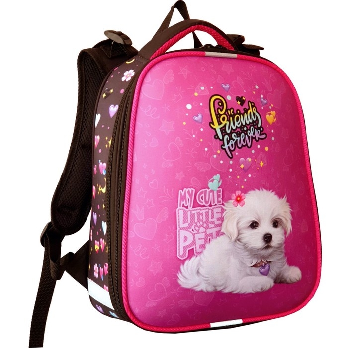 Рюкзак каркасный школьный 38 х 30 х 16 см, эргономичная спинка, Stavia "Белая собачка" мультиколор/розовый
