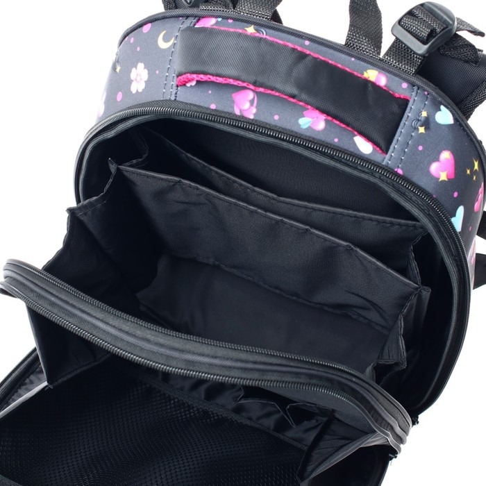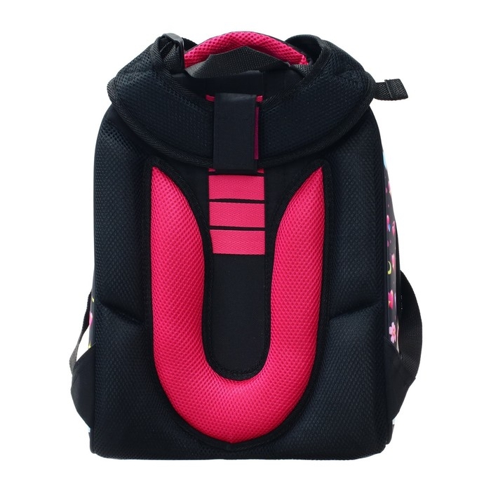 Рюкзак каркасный школьный 38 х 30 х 16 см, эргономичная спинка, Stavia "Фламинго мини", чёрный/розовый