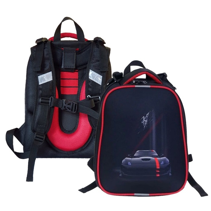 Рюкзак каркасный школьный 38 х 30 х 16 см, эргономичная спинка, Stavia "Чёрная машина"