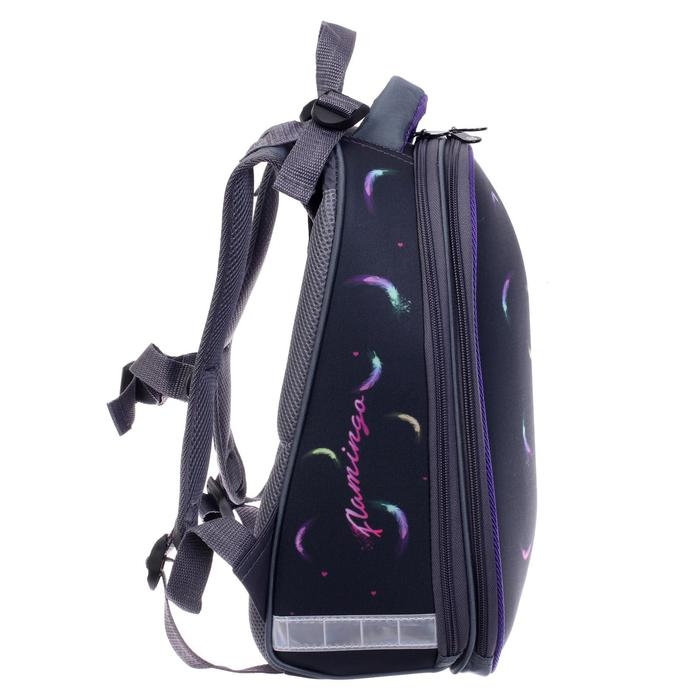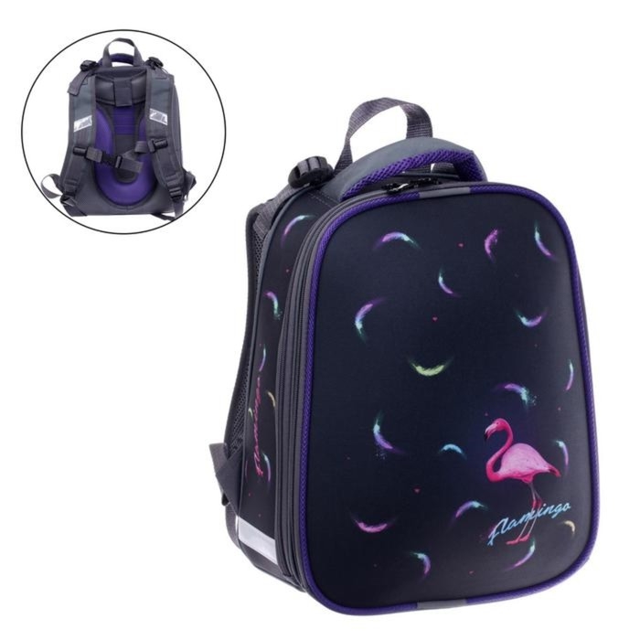 Рюкзак каркасный школьный 38 х 30 х 16 см, эргономичная спинка, Stavia "Фламинго мини", чёрный/розовый