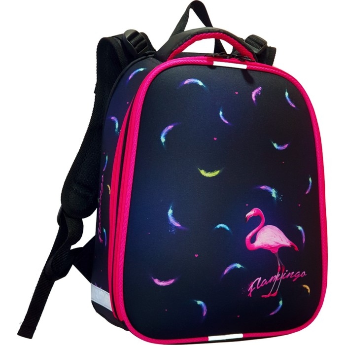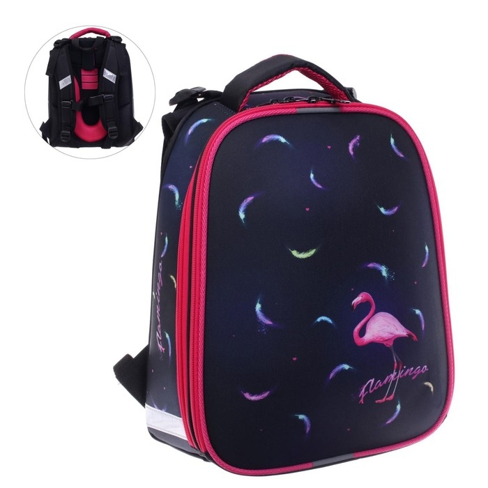 Рюкзак каркасный школьный 38 х 30 х 16 см, эргономичная спинка, Stavia "Фламинго мини", чёрный/розовый