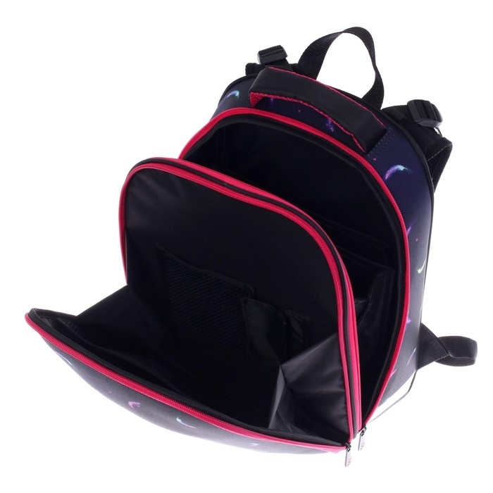 Рюкзак каркасный школьный 38 х 30 х 16 см, эргономичная спинка, Stavia "Фламинго мини", чёрный/синий/розовый