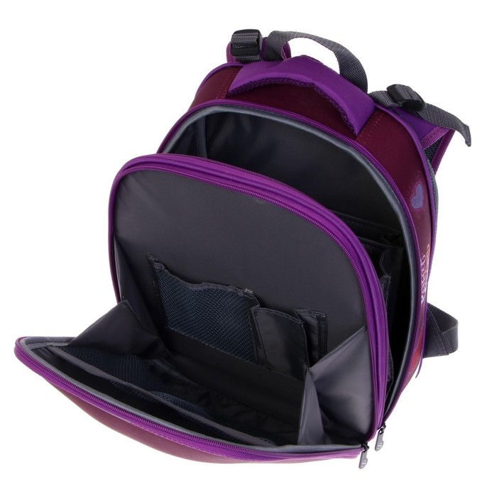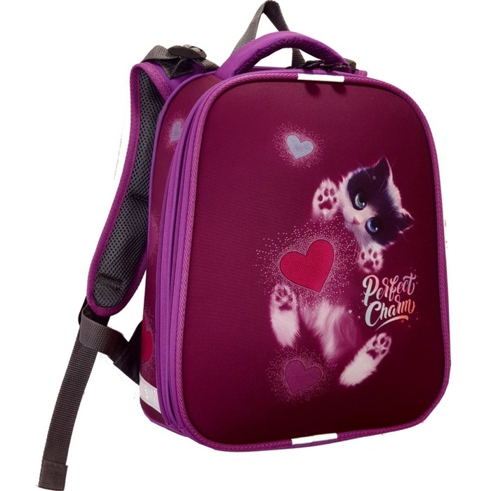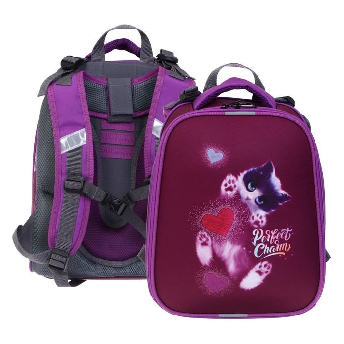 Рюкзак каркасный школьный 38 х 30 х 16 см, эргономичная спинка, Stavia "Котик 3D", сиреневый