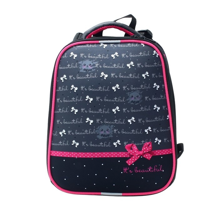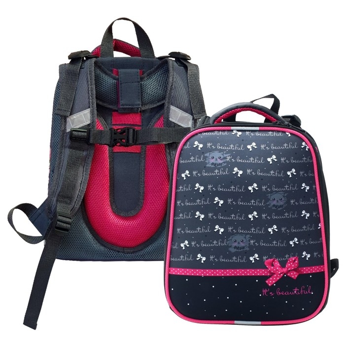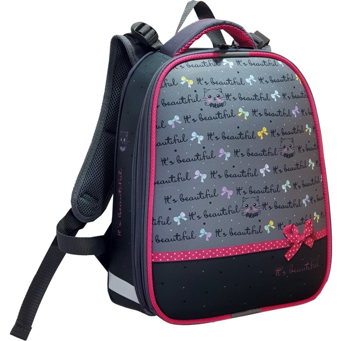 Рюкзак каркасный школьный 38 х 30 х 16 см, эргономичная спинка, Stavia "Мяу", серый/чёрный