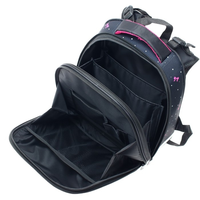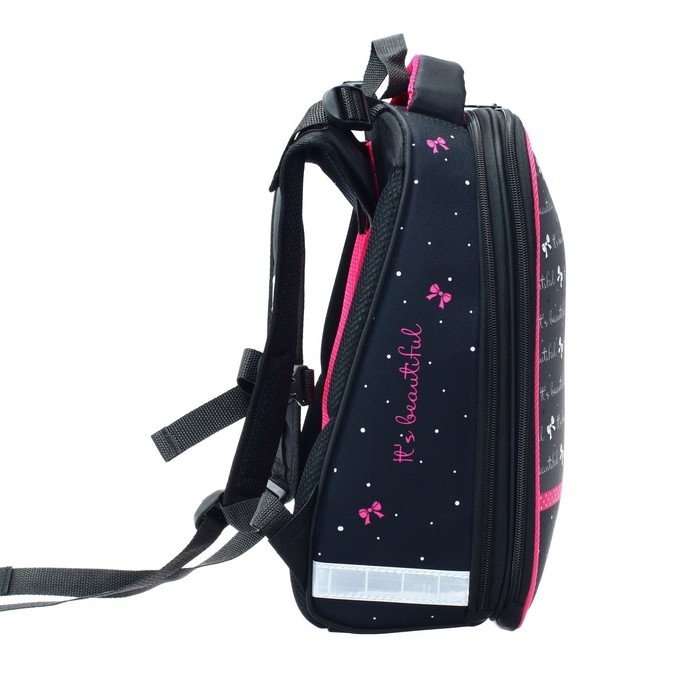 Рюкзак каркасный школьный 38 х 30 х 16 см, эргономичная спинка, Stavia "Фламинго мини", чёрный/розовый
