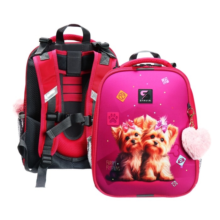 Рюкзак каркасный школьный 38 х 30 х 16 см, эргономичная спинка, Stavia "Йорки", розовый