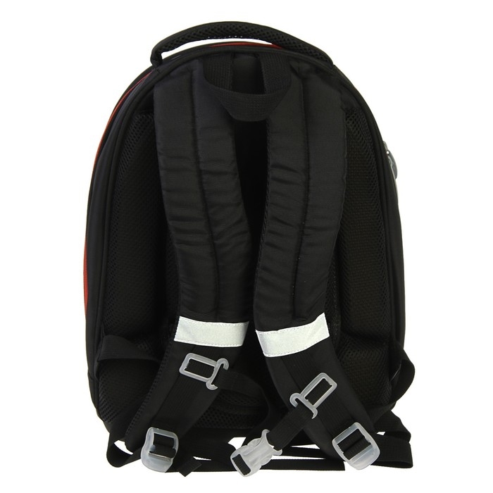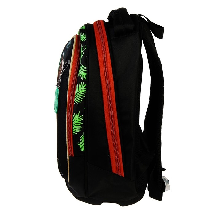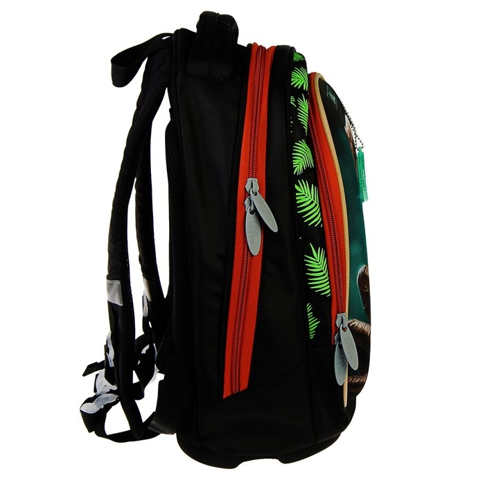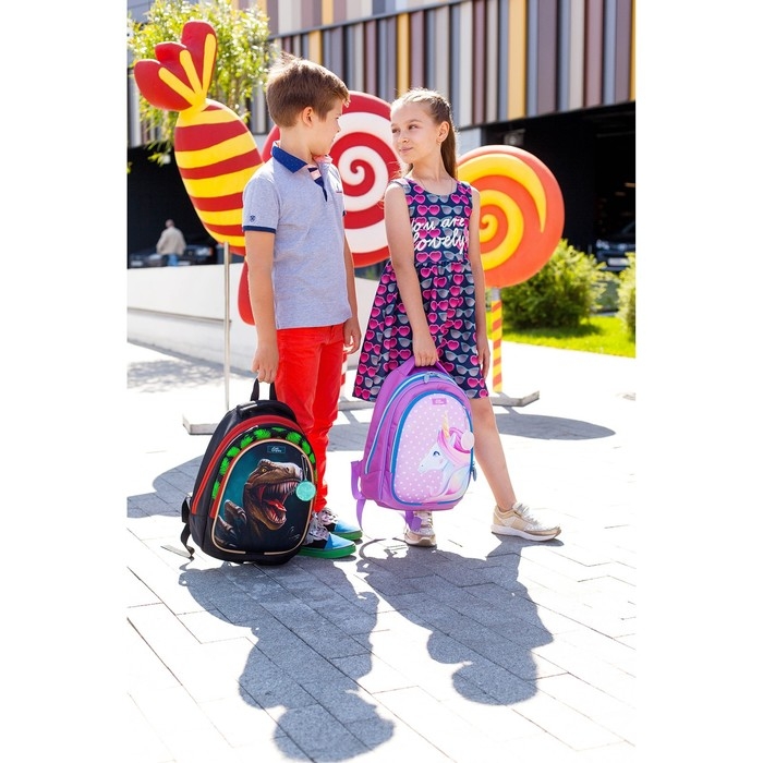 Формованный ученический рюкзак для младшего школьного возраста предназначен для переноски личных вещей и школьных принадлежностей.Верх изделия выполнен из прочного водоотталкивающего материала с покрытием ПУ, усиленный с помощью специальных материалов, держит форму.Отдельные элементы оформлены оригинальным принтом. Внутренняя поверхность изготовлена из цветной подкладочной ткани, соответствующей дизайну.