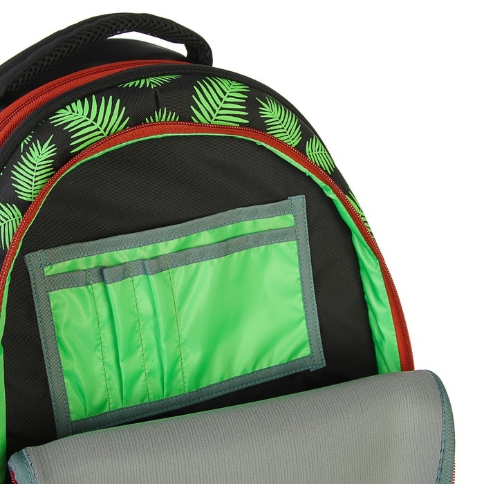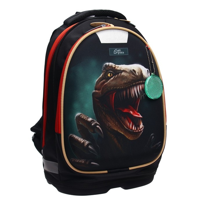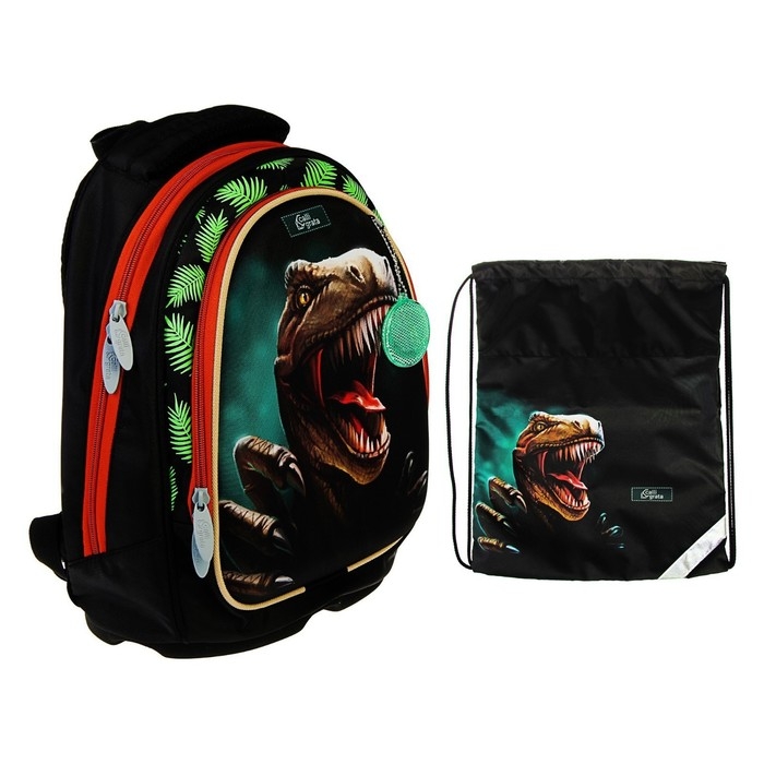 Рюкзак каркасный школьный, 39 х 28 х 18 см, + мешок для обуви, Calligrata П "Крутой дино", зелёный