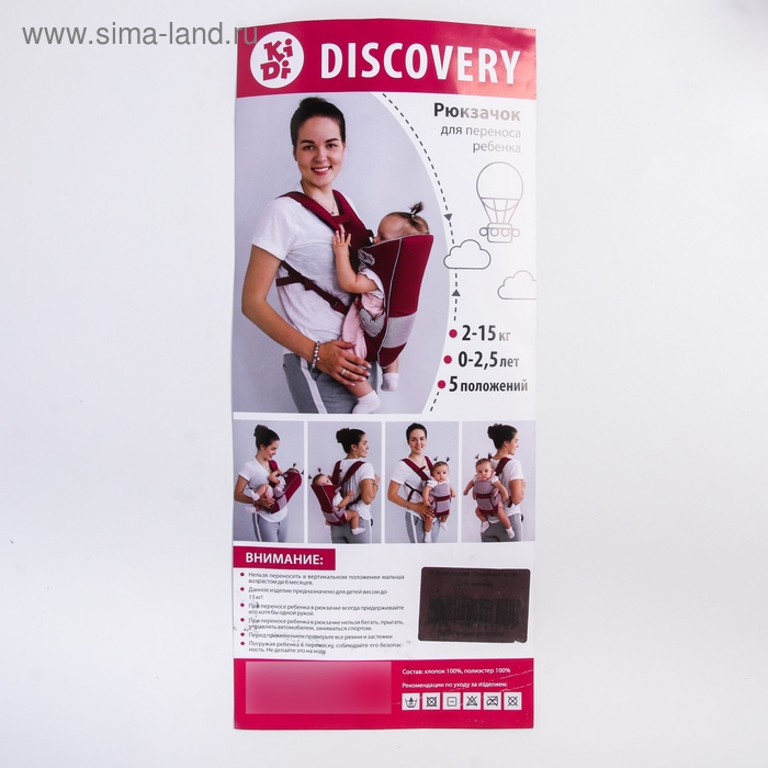Рюкзак-кенгуру для малыша «Дискавери», 5 в 1, от 2 до 15 кг., цвет серый