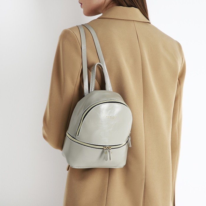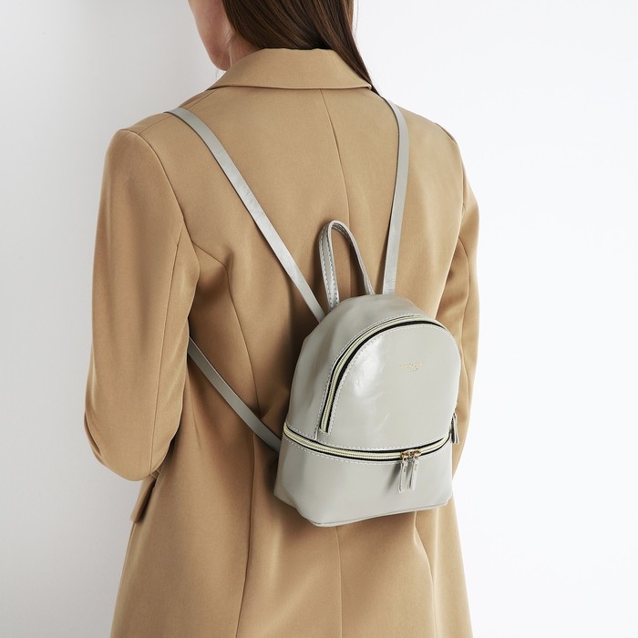 Рюкзак-мини из искусственной кожи на молнии, цвет серый