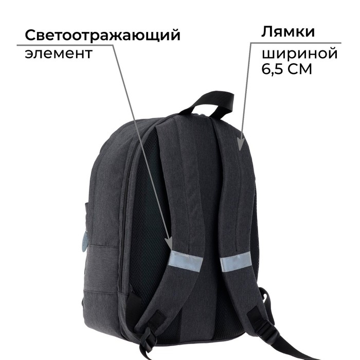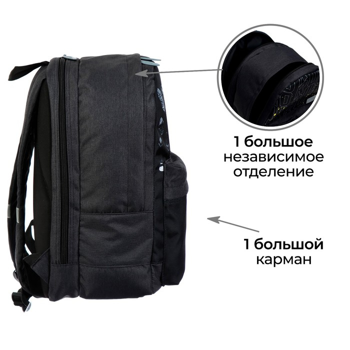 Рюкзак молодёжный, школьный, 41×28×15 см, эргономичная спинка, Stavia «Реалист» чёрный