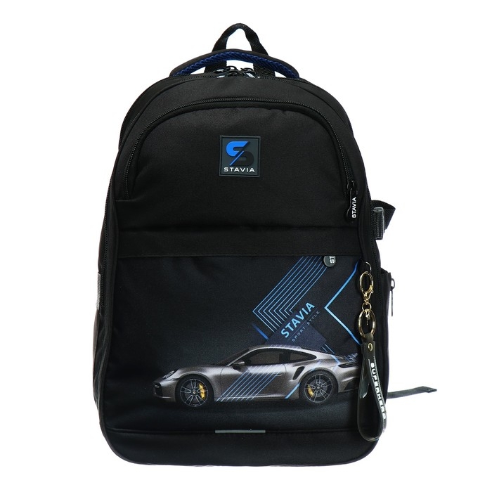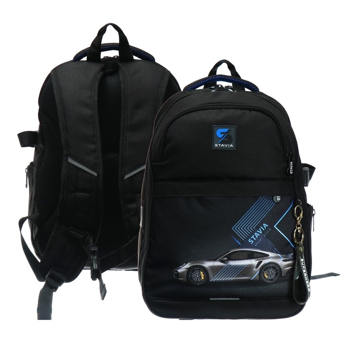 Рюкзак молодёжный, 40 х 28 х 18 см, эргономичная спинка, Stavia "Машина", чёрный