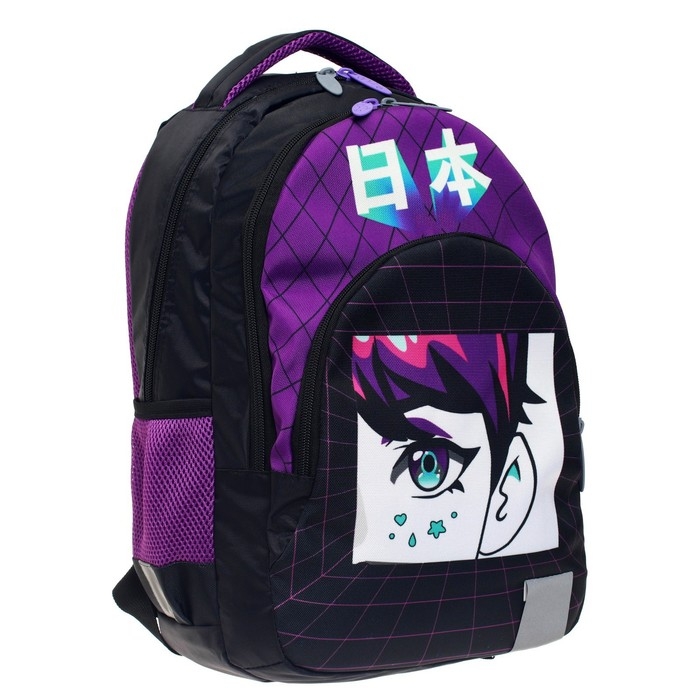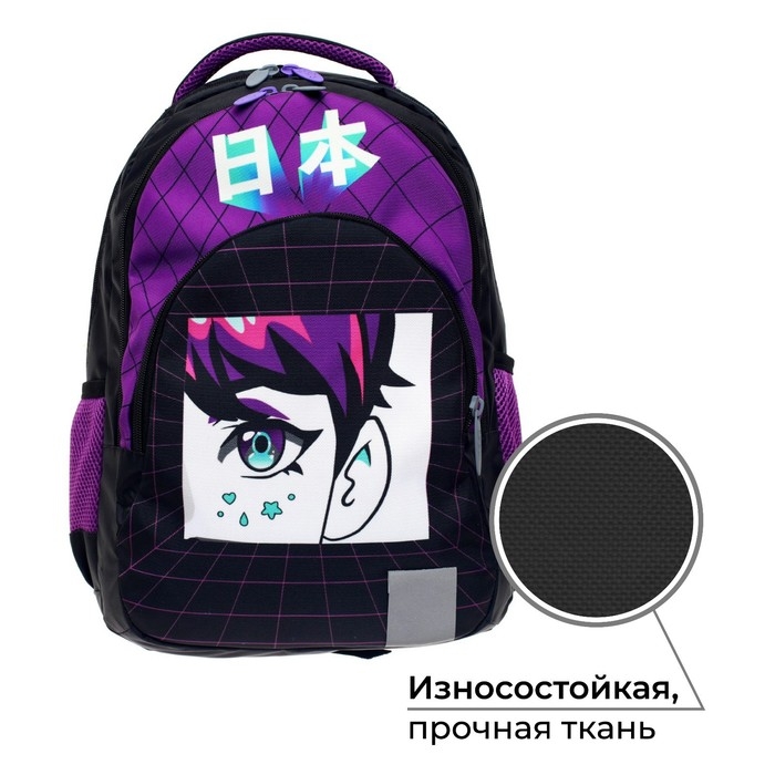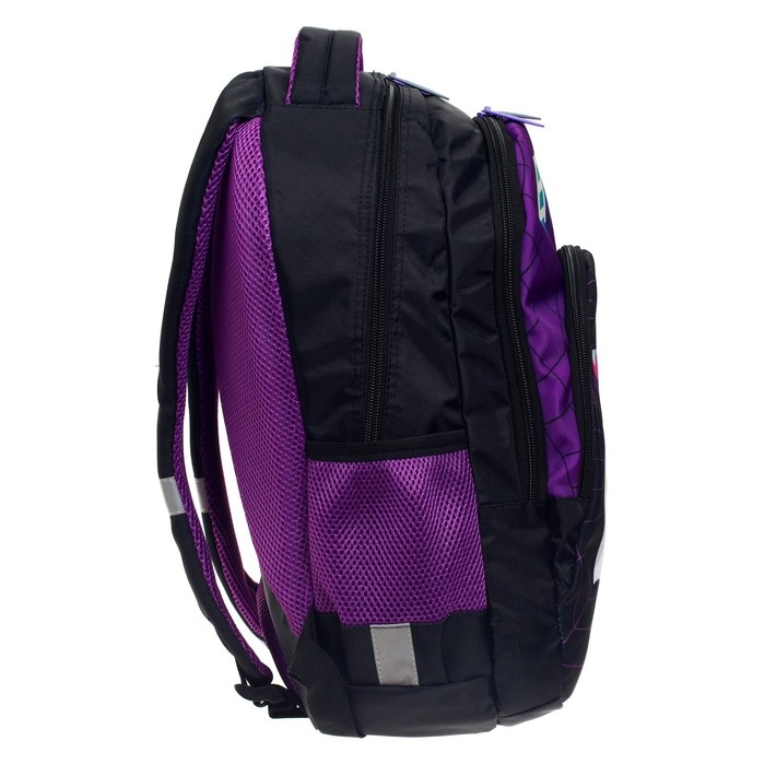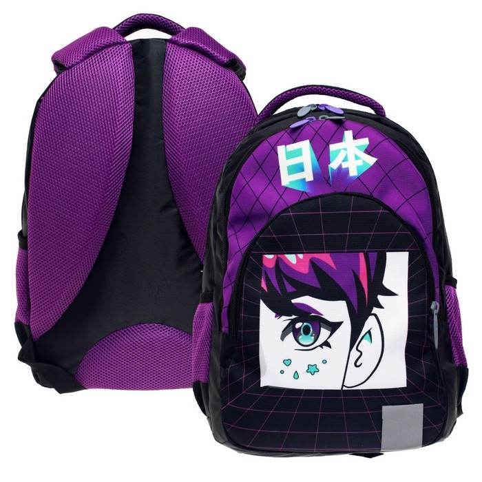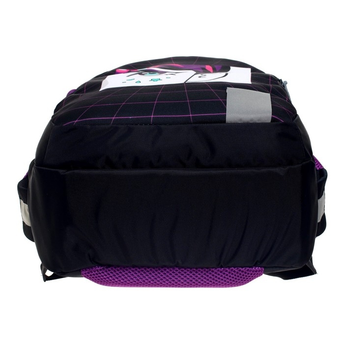 Ученический рюкзак для среднего школьного возраста предназначен для переноски личных вещей и школьных принадлежностей. Верх изделия выполнен из прочного водоотталкивающего материала с покрытием ПВХ. Отдельные элементы оформлены оригинальным принтом. Внутренняя поверхность изготовлена из цветной подкладочной ткани, соответствующей дизайну.
