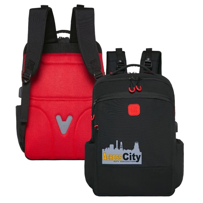 Рюкзак молодёжный 45 х 31 х 12 см, эргономичная спинка, Across М-4, чёрный/красный M-4-2
