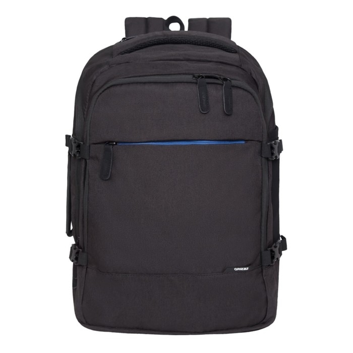 Рюкзак молодёжный, 45 х 32 х 21 см, Grizzly 019, эргономичная спинка, чёрный/синий RQ-019-12