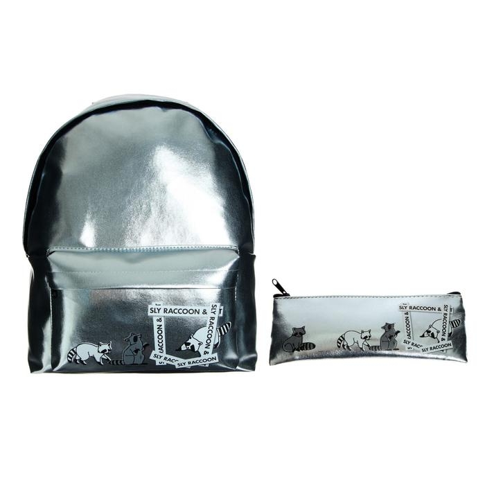 Рюкзак молодёжный Calligrata "Енотик" + пенал - косметичка, 38 х 30 х 11 см, голография