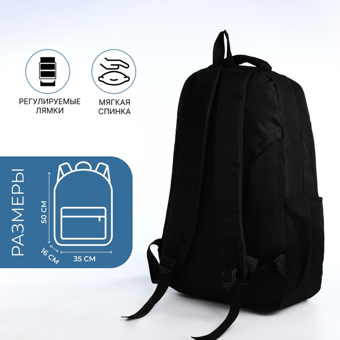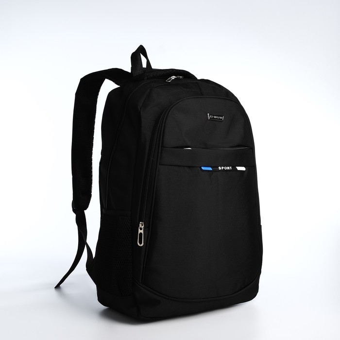 Рюкзак молодёжный из текстиля на молнии, 4 кармана, цвет чёрный/синий