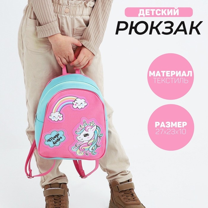 Рюкзак молодёжный на молнии, цвет мятный/розовый