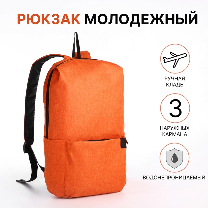 Рюкзак молодёжный на молнии, водонепроницаемый, 3 наружных кармана, цвет оранжевый