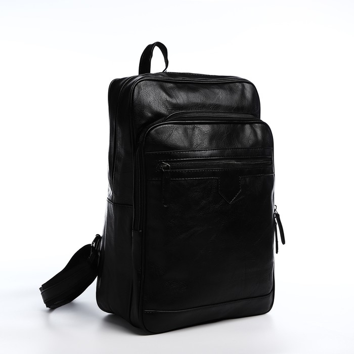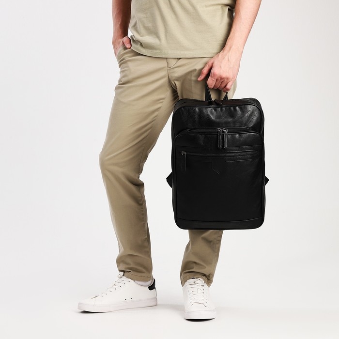 Рюкзак мужской на молнии, 2 наружных кармана, цвет чёрный