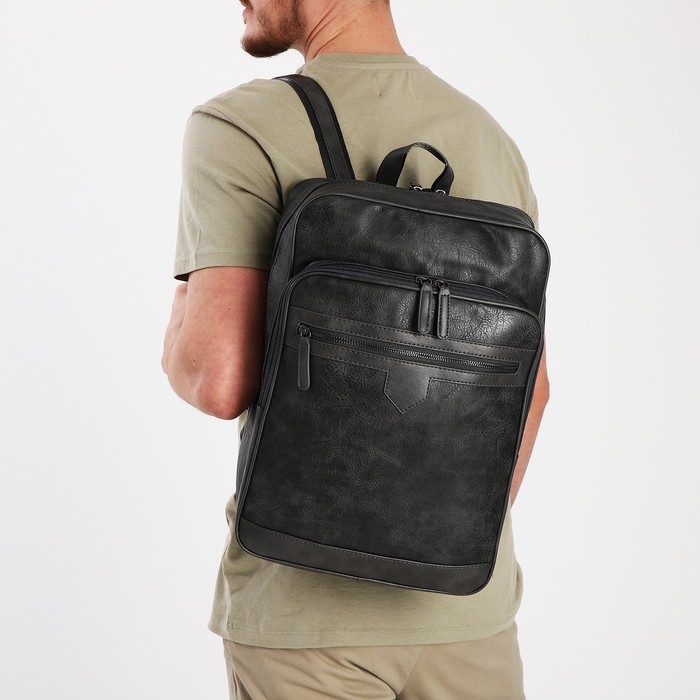 Рюкзак мужской на молнии, 2 наружных кармана, цвет серый