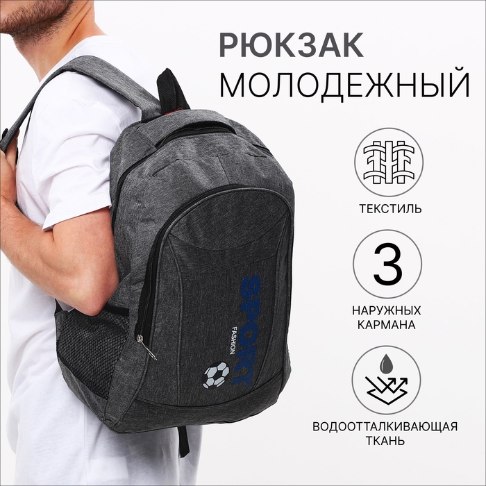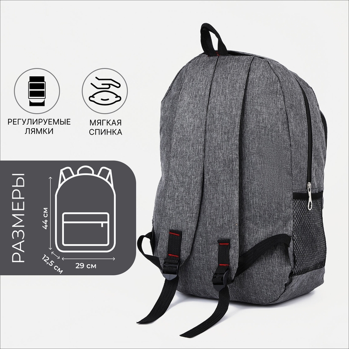 Рюкзак мужской на молнии, 3 наружных кармана, цвет серый