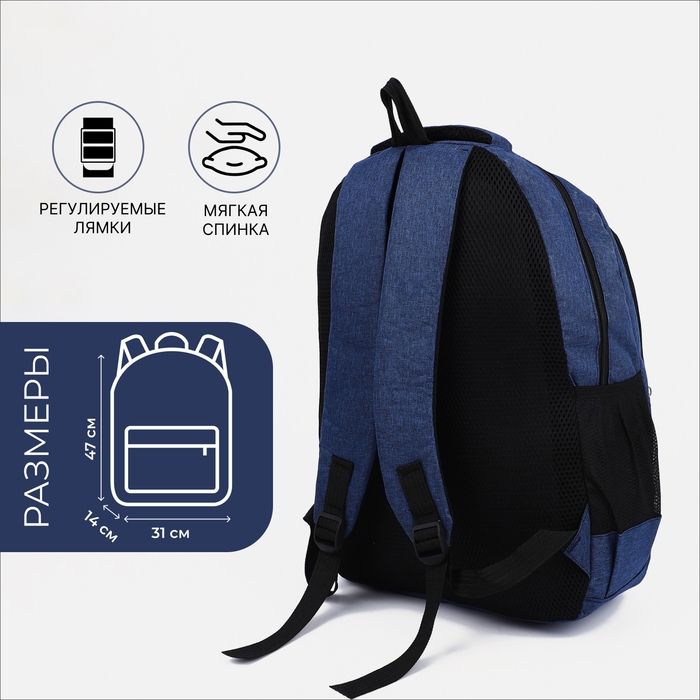 Рюкзак мужской на молнии, наружный карман, цвет синий