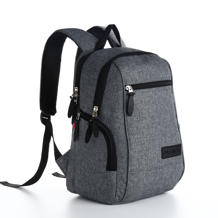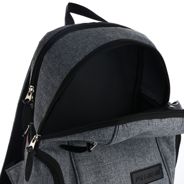Рюкзак мужской, RISE, 2 отдела на молниях, 2 боковых кармана, цвет серый