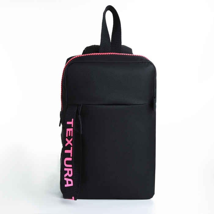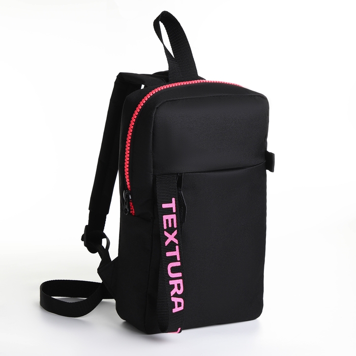 Рюкзак на молнии TEXTURA, наружный карман, цвет чёрный/розовый