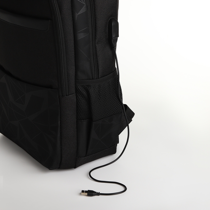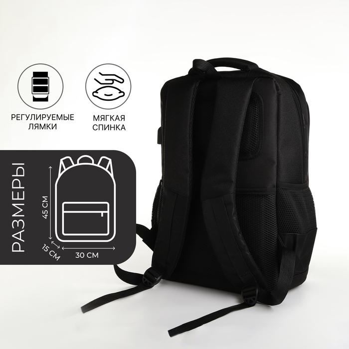 Рюкзак школьный, 2 отдела на молнии, 4 кармана, с USB, цвет чёрный