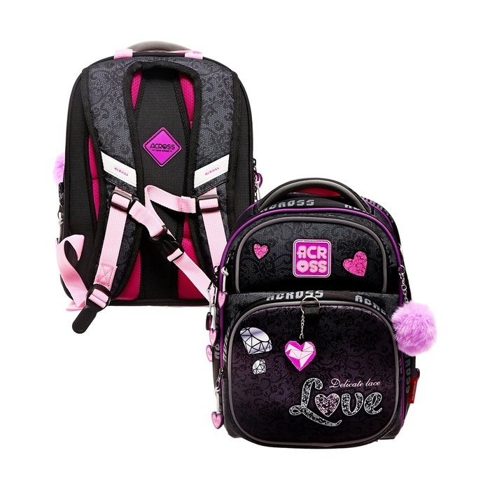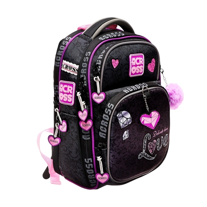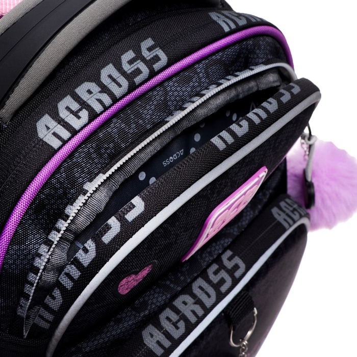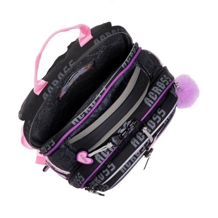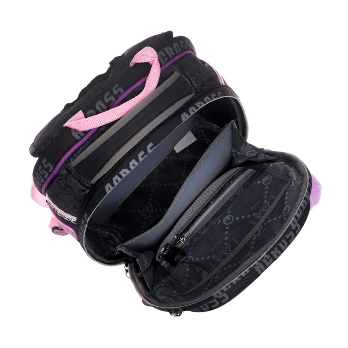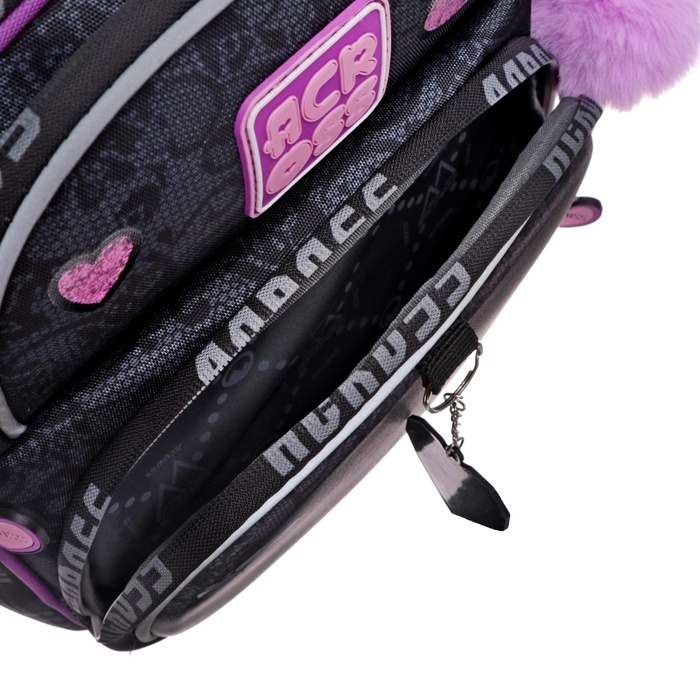 Рюкзак имеет 4 отделения , внутри 2 отделения формата А4, которые для удобства разделены между собой под учебники и тетради. Передний внешний кармана портфеля можно использовать как органайзер под канцелярию, что заменит школьнику пенал. Ранец школьный также оснащен боковыми открытыми карманами под воду, зонт. Рюкзак для начальной школы продуман до мелочей. С помощью декоративной подвески на бегунке молнии, дети смогут легко застегивать и расстегивать молнию в обе стороны