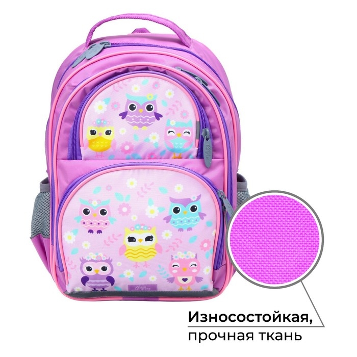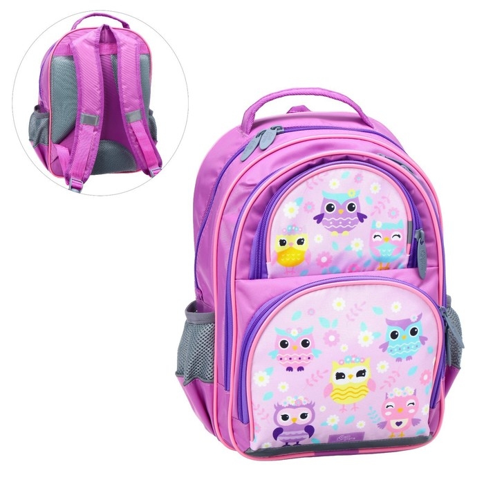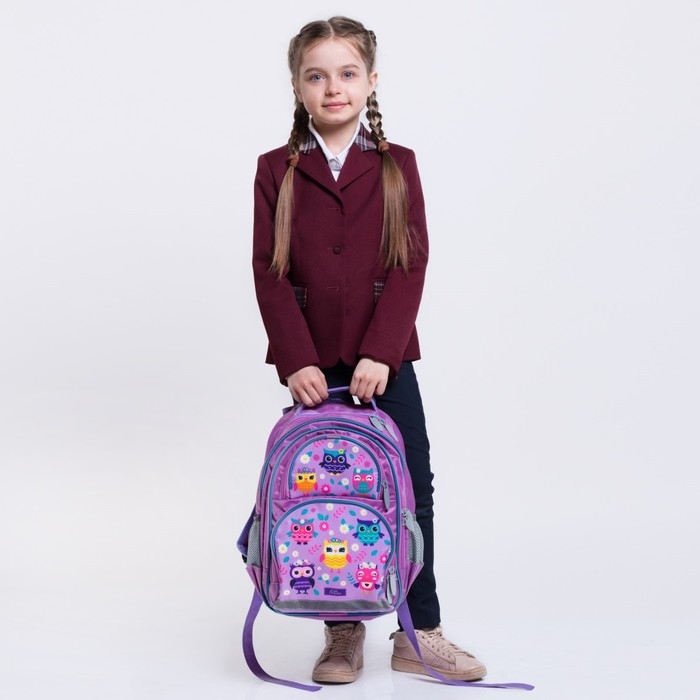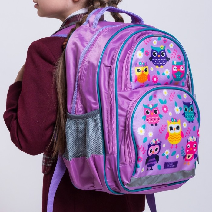 Рюкзак школьный, 36 х 23 х 13 см, эргономичная спинка, Calligrata П "Совушка", сиреневый