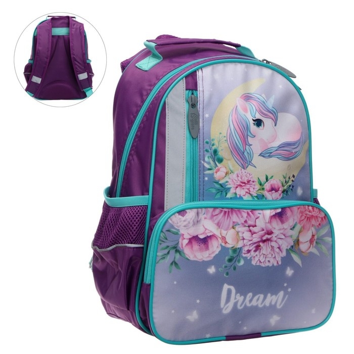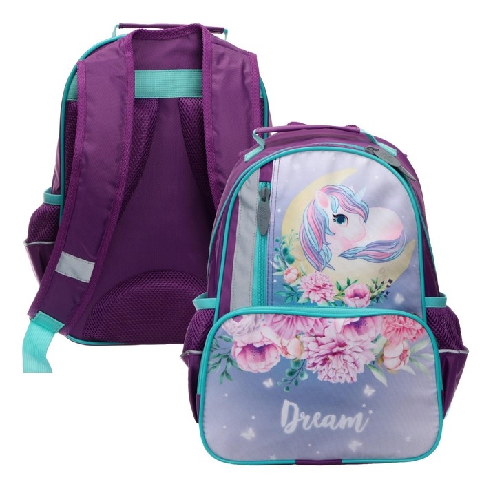 Рюкзак школьный, 37 х 26 х 13 см, эргономичная спинка, Calligrata ОРТ "Единорожка"