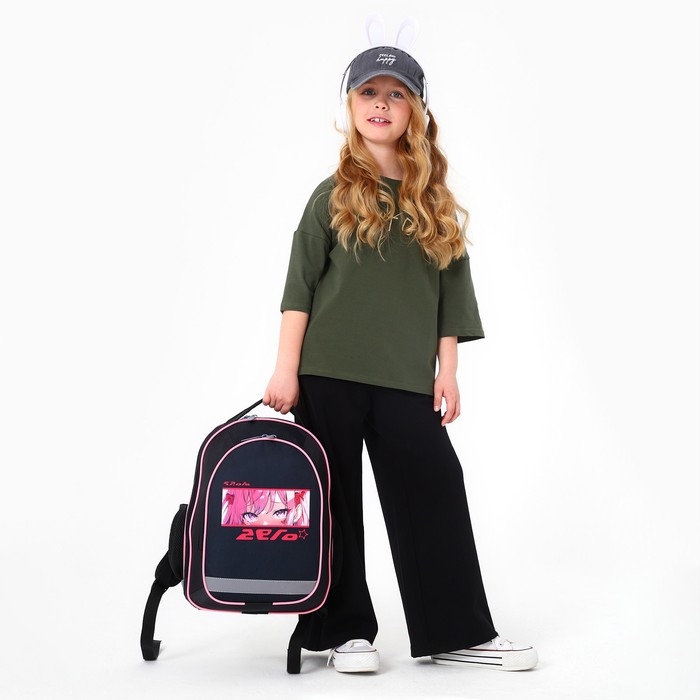 Рюкзак каркасный школьный 38 х 30 х 16 см, эргономичная спинка, Stavia "Фламинго мини", чёрный/розовый
