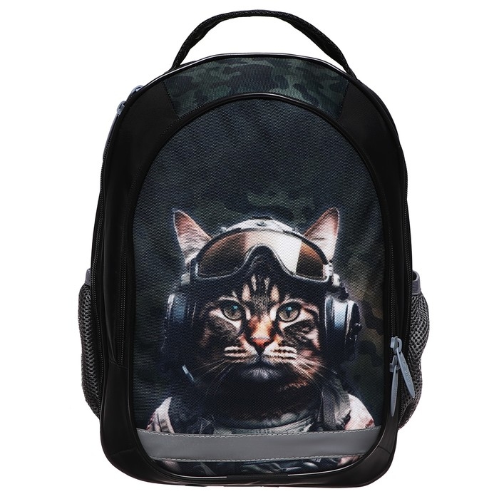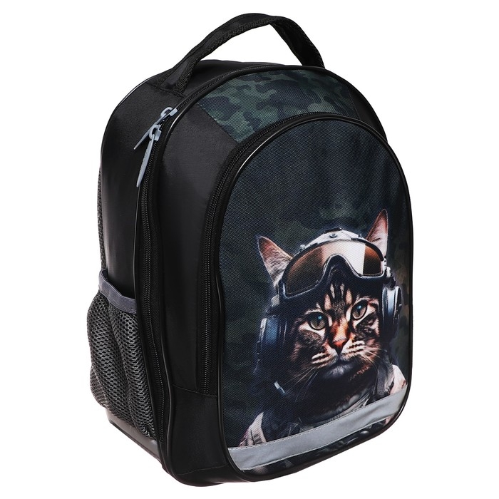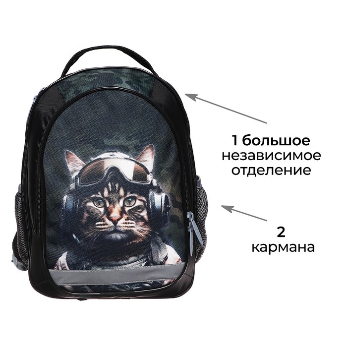 Рюкзак школьный, 37 х 27 х 16 см, эргономичная спинка, Calligrata Б "Кот милитари"