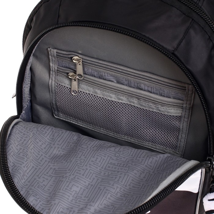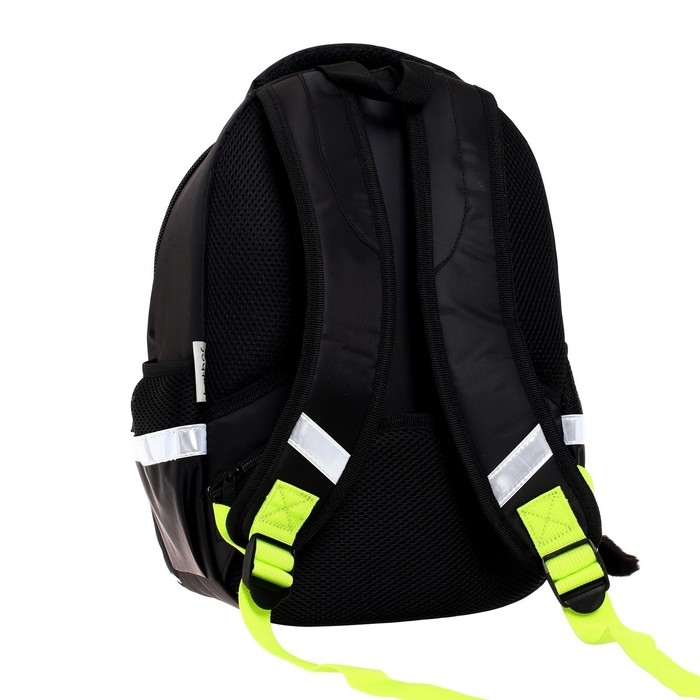 Эргономичная вентилируемая спинка с мягкими вставками, регулируемые лямки, усиленное дно, светоотражающие элементы,крупные удобные молнии, мягкая ручка для переноса и ручка-петля для подвеса. Нагрудная стяжка позволит плотно закрепить ранец на спине школьника. Два вместительных отделения, внутри основного – карман-перегородка, во втором отделении – функциональный органайзер , включающий два кармана на молнии для мелочей и мобильного телефона, отстегивающийся карабин для ключей. Боковые карманы для бутылки с водой или термоса. На спинке имеется потайной карман на молнии – необходимая опция для каждого школьника. Светоотражающие элементы на лямках, передней и боковых частях рюкзака обеспечивают безопасность ребенка на дороге.