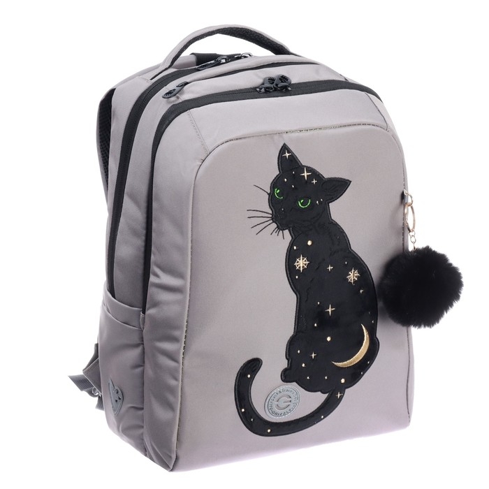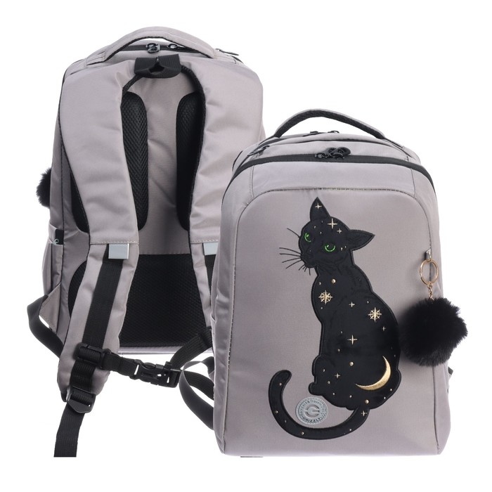 Рюкзак школьный, 39 х 26 х 17 см, Grizzly, эргономичная спинка, серый