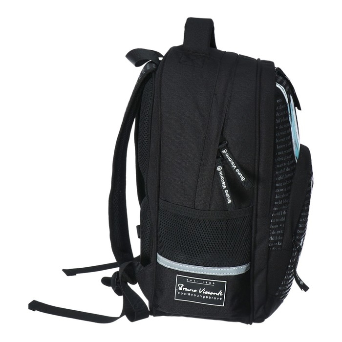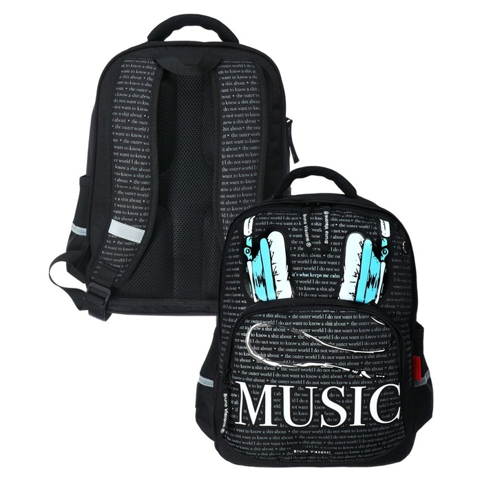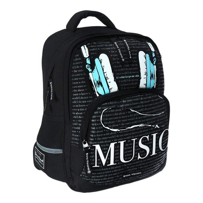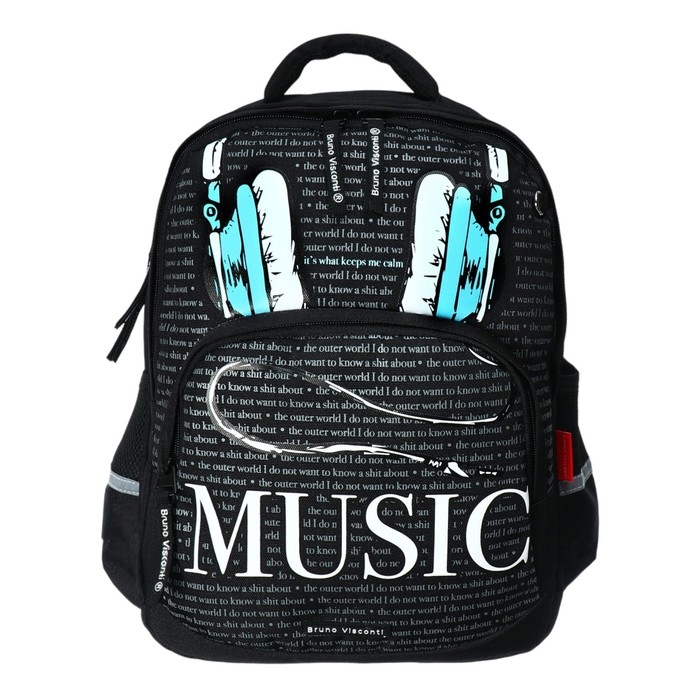 Рюкзак школьный 40 х 30 х 19 см, эргономичная спинка, Bruno Visconti 12-002 SOUNDMANIA, чёрный