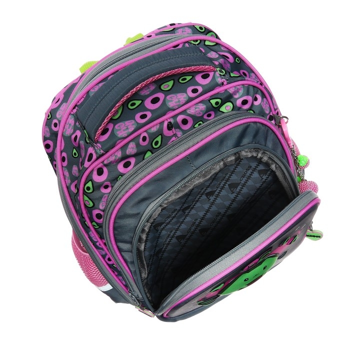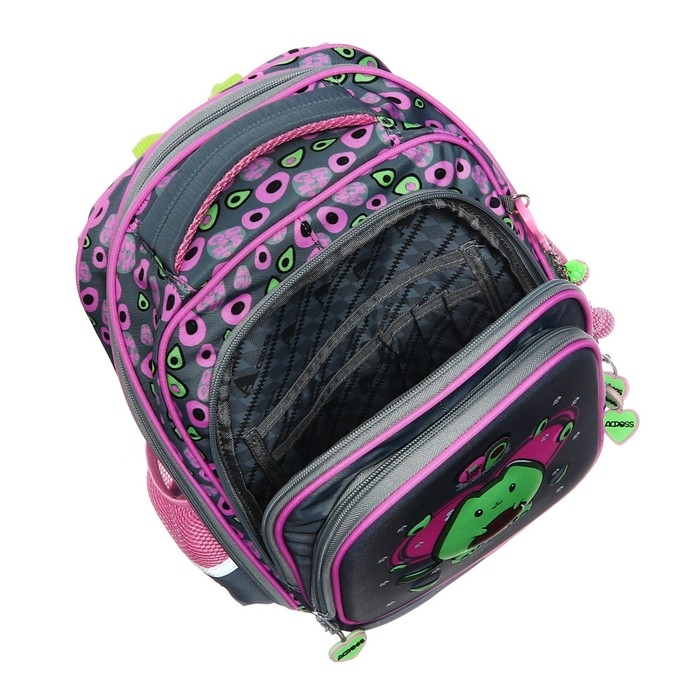 Нагрудный фиксатор и поясничная подушка способствуют равномерному распределению веса. В нем предусмотрена плотная усиленная ручка, вместительное отделение для тетрадей, книжек, карман для бутылки с водой, маленьких аксессуаров, предметов для школы. Светоотражающие элементы обеспечивают дополнительную безопасность в тесное время суток.