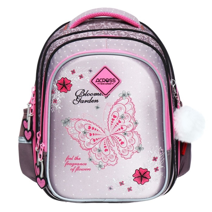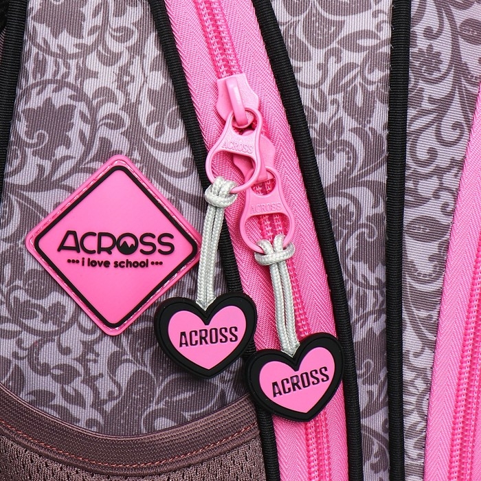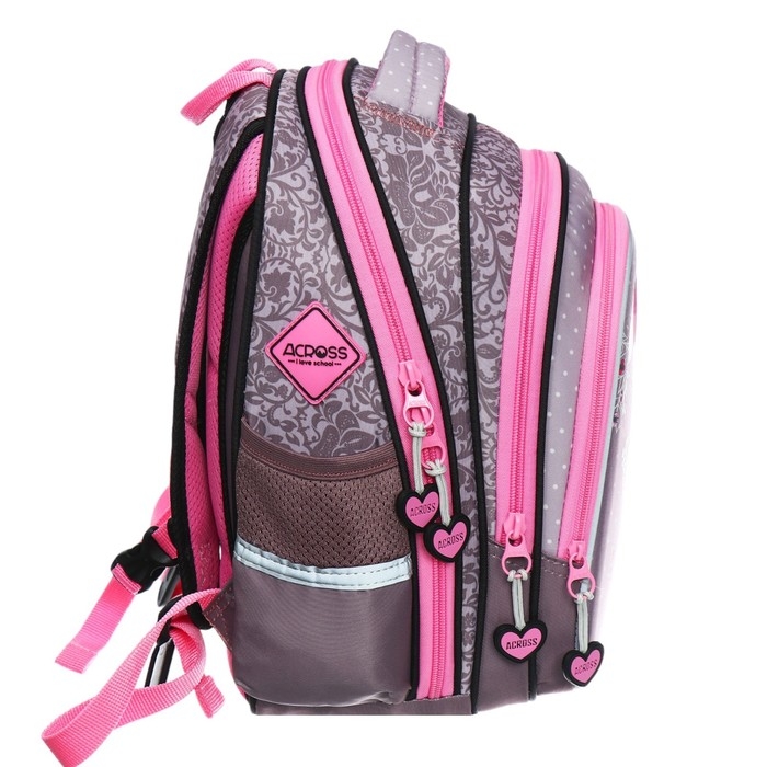 Рюкзак школьный 40х33х15см, эргономичная спинка, Across 410, серый/розовый