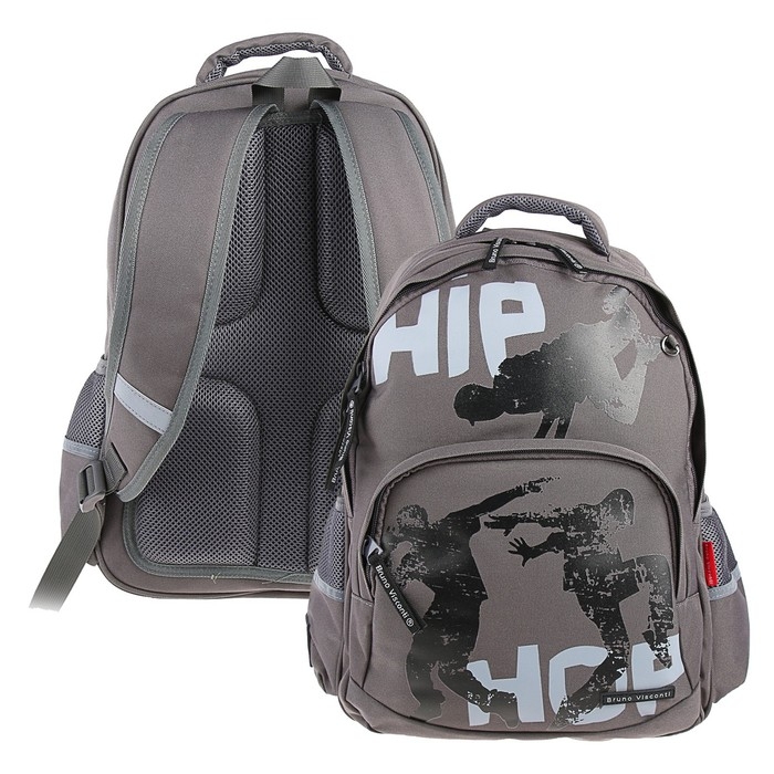 Рюкзак школьный Bruno Visconti, 40 х 30 х 16 см, эргономичная спинка, «Хип-Хоп», тёмно-серый